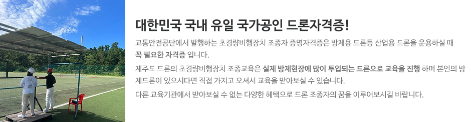 전문교육기관인 제주도 드론의 초경량비행장치 조종 교육은 일반 사설교육기관과는 다릅니다.