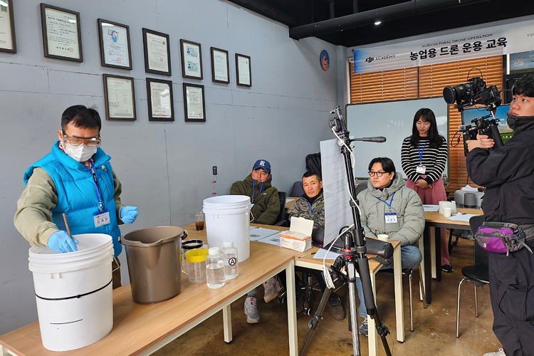 관련 법규에 대한 이해를 바탕으로농약 준비 과정, 장비 점검, 배터리 충전, 농업용 드론을 사용한 분무/살포 시 안전 전라를 이해하고 사고를 예방하는 방법 교육.